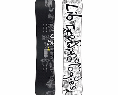 Skate Banana, tecnologia BTX, il banana shape classico che ha innescato la rivoluzione… qui nella versione “firmata” Brandon Reis, della quale ha realizzato la grafica… In Lib Tech volevano dare una rinfrescata alla loro iconica Skate Banana e quindi si sono rivolti ad uno dei più prolifici freestyler, che guarda caso è anche un eccellente artista, e gli hanno fornito una “tavola bianca”, così che potesse creare la sua Mona-Reissa…