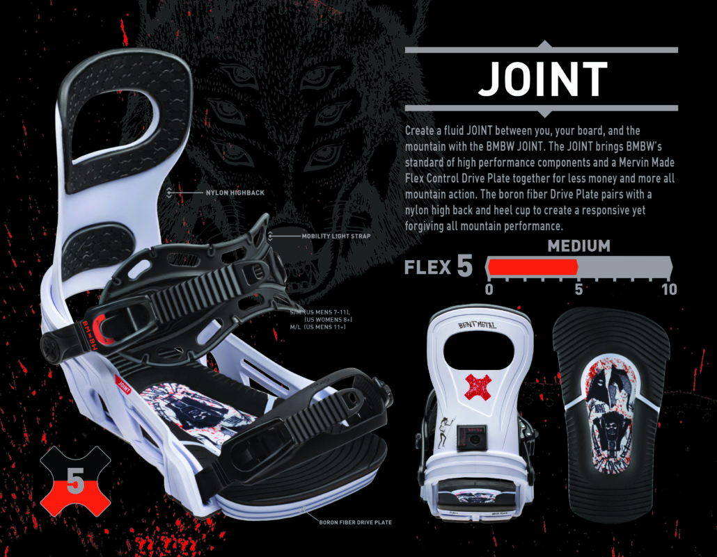 Crea una connessione tra te, la tavola e la montagna… Con il Joint di BMBW troverai il connubio tra alti standard propri della produzione Bent Metal con la soletta Flex Control Driving Plate ® creata da Mervin MFG, il tutto ad un prezzo super competitivo!