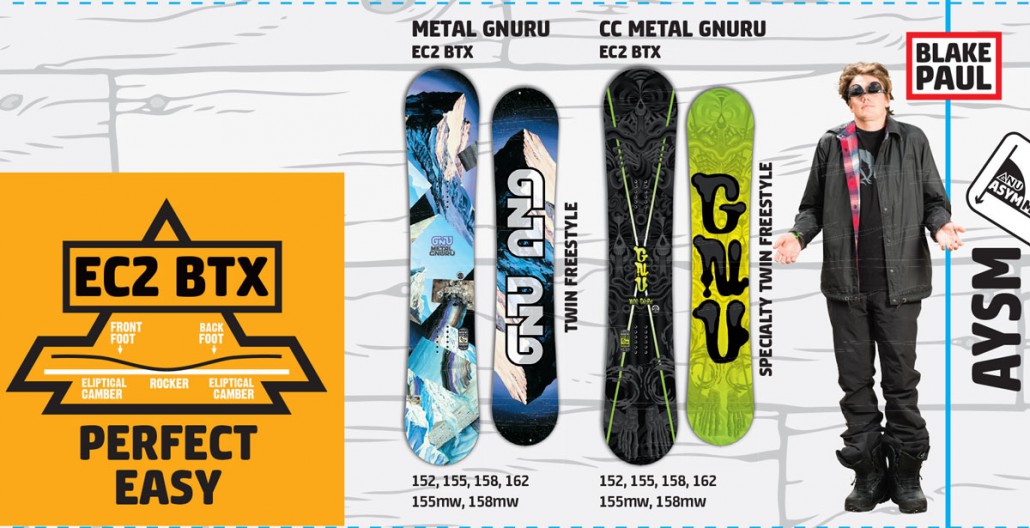 Tecnologia EC2 BTX, twin tip con rocker centrale e camber ellittici alle estremità, e lamine asimmetriche dedicate rispettivamente al front e back-side.